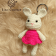 ✔️ شكل لطيف ومميز: أرنب صغير بملامح بريئة وابتسامة ناعمة، يرتدي فستانًا أنثويًا جذابًا بلون فوشيا ساحر.