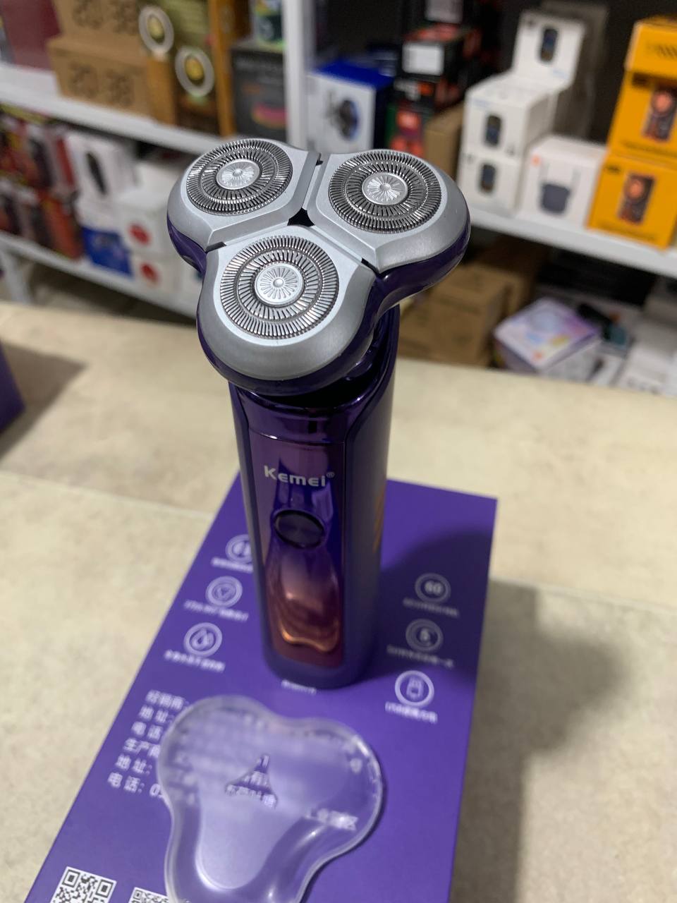 Conception imperméable IPX6, corps complet lavableRasage humide ou sec, vous pouvez utiliser avec la crème à raserMoteur à grande vitesse, à faible bruitBatterie Lithium-ion 800mAhÉcran LCD, rappel de charge, rappel d’alimentation de la batterie, rappel de lavage, rappel de verrouillage de voyageTravail: cordon/sans filType: RechargeableTemps d’utilisation: 60-90minsTemps de charge: 2-5 heuresTension: 100-240V,50/60HzMatériau: ABS
